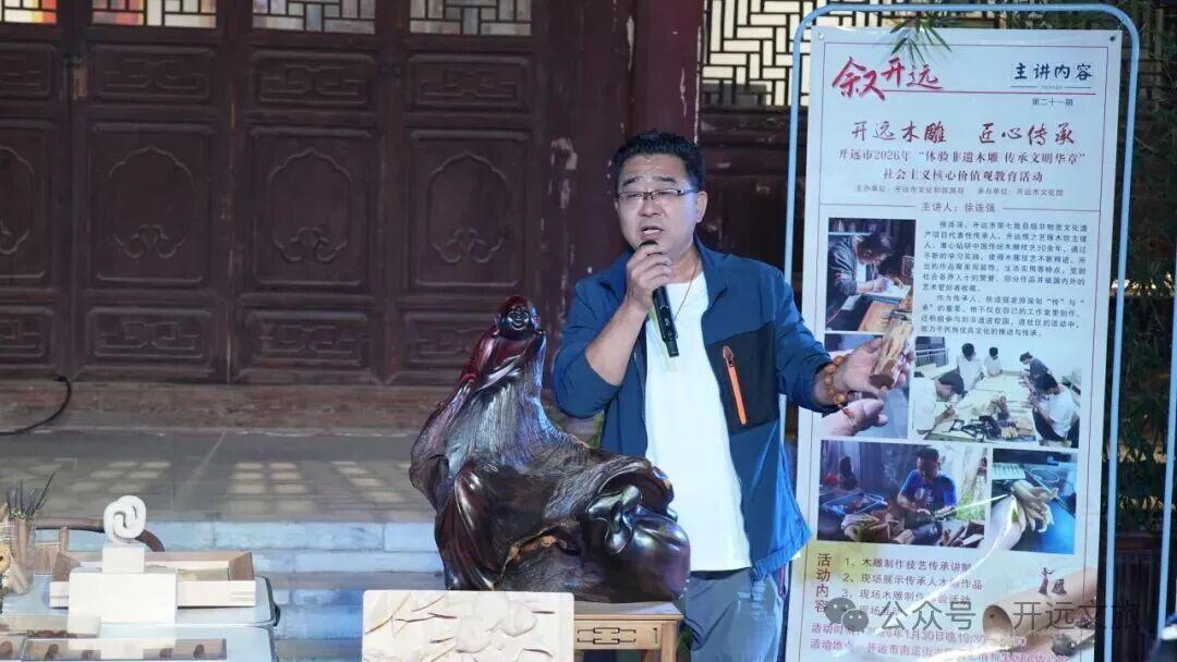 1月30日,第二十一期“叙开远”活动圆满落幕。本次活动特邀开远市非物质文化遗产县级项目《开远木雕制作技艺》代表性传承人徐连强先生,以木为媒,以艺传情,带大家沉浸式体验这门古老技艺的独特魅力。