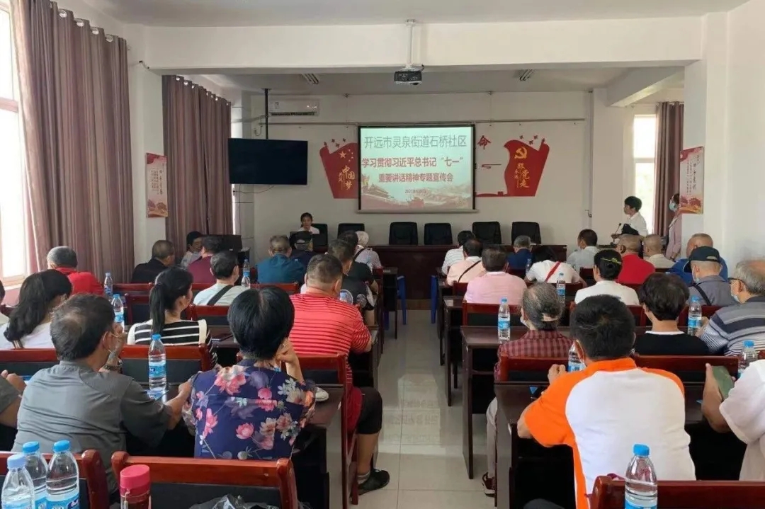 自党史学习教育开展以来,灵泉街道扎实推进党史学习教育宣讲进社区、进基层,8月6日上午,灵泉街道邀请党校吴桂英老师在石桥社区给街道及社区党员及群众开展了“学习贯彻习近平总书记‘七一’重要讲话精神”专题宣讲会,街道、社区党员及居民代表共60余人参与会议。