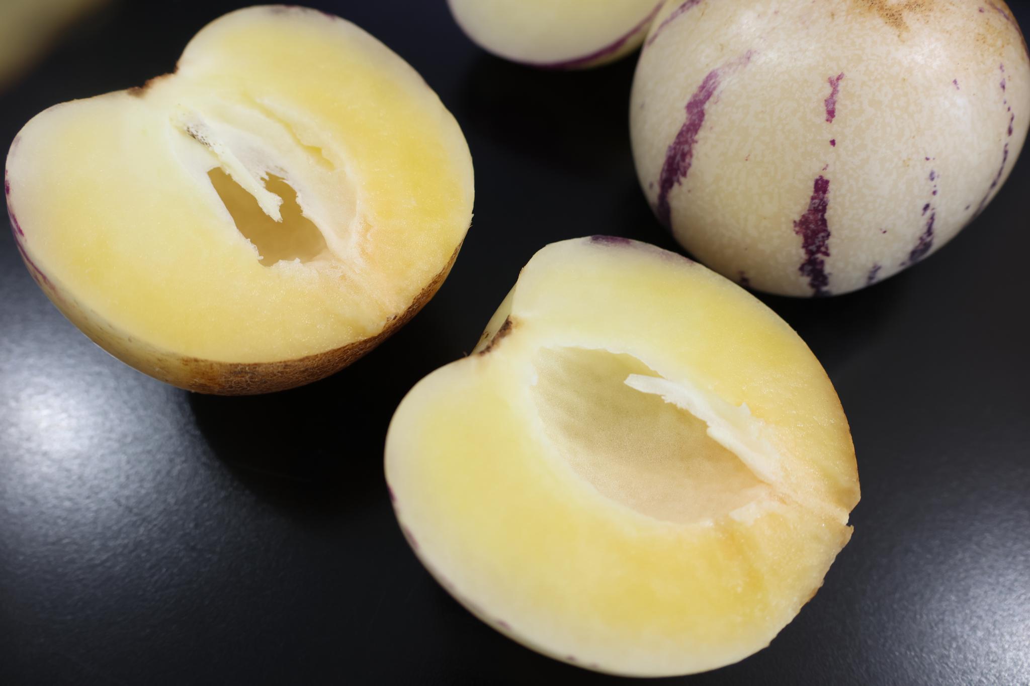 与外面冬日的萧瑟截然不同,小龙潭镇绿差冲村的一个个温室大棚里,是另一个鲜活的世界。走进大棚,暖意裹挟着清新的草木芬芳扑面而来,一颗颗鹅卵形人参果挂满枝头,它们色泽温润,表皮缠绕着紫色纹路,在暖棚里悄悄地积蓄着甜蜜力量。