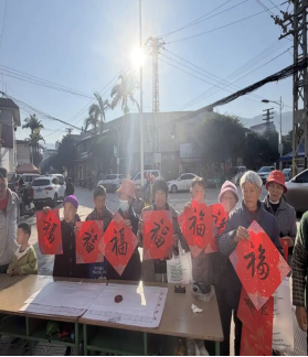 新春将至,年味渐浓,为弘扬中华优秀传统文化,营造欢乐祥和的节日氛围,1月29日,镇党群服务中心邀请市文联原副主席王应生老师到场开展“马年启新·新春送福”迎新春主题活动。王老师现场挥毫泼墨,笔力遒劲,为前来的村(居)民免费书写饱含美好寓意的“福”字和新春对联。活动现场墨香四溢、暖意融融,一句句吉祥话语、一幅幅喜庆春联,承载着浓浓的新春祝福,传递着镇党委和政府的温情关怀,群众纷纷称赞这次活动贴心暖心,让大家在墨香中感受到了传统年俗的魅力。