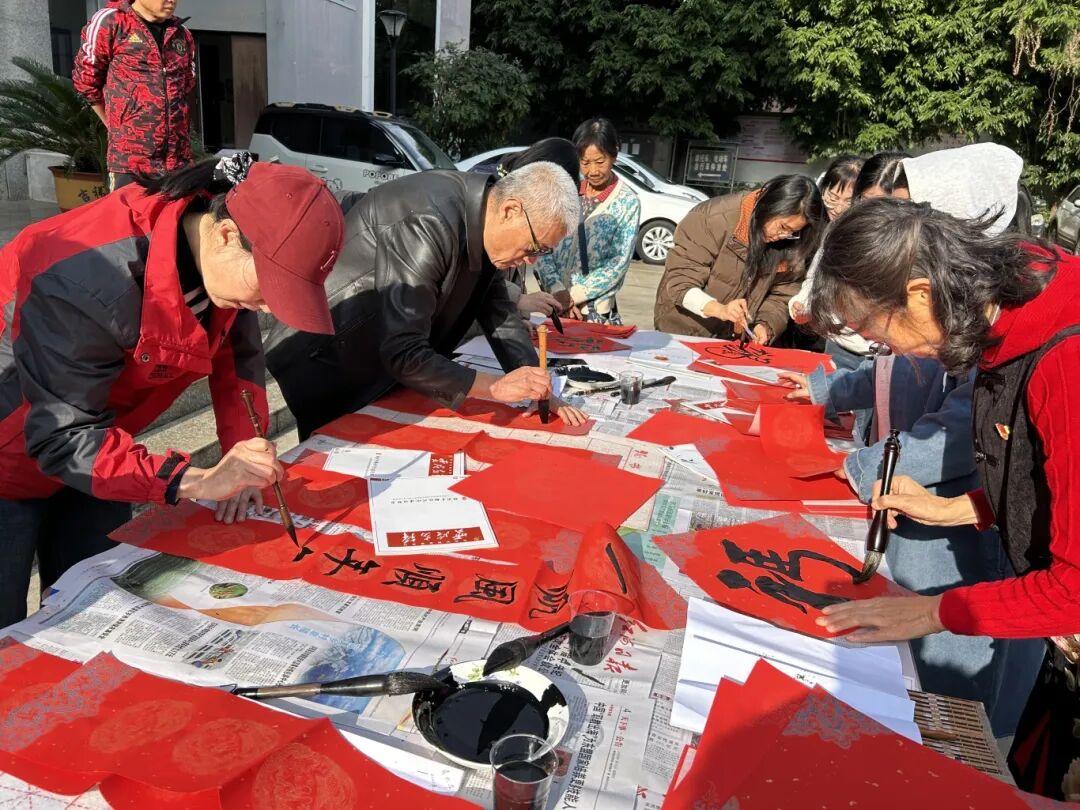 在“三下乡”主会场,志愿者挥毫书联;各社区也延续这份雅韵:小新村社区在尚景春天小区开展“笔墨传情暖社区”活动,书法爱好者现场运笔,以墨香传递祝愿;石桥社区特邀市书法协会老师走进社区,在“墨香迎新春”活动中,让居民近距离感受书法魅力,收获真挚祝福。