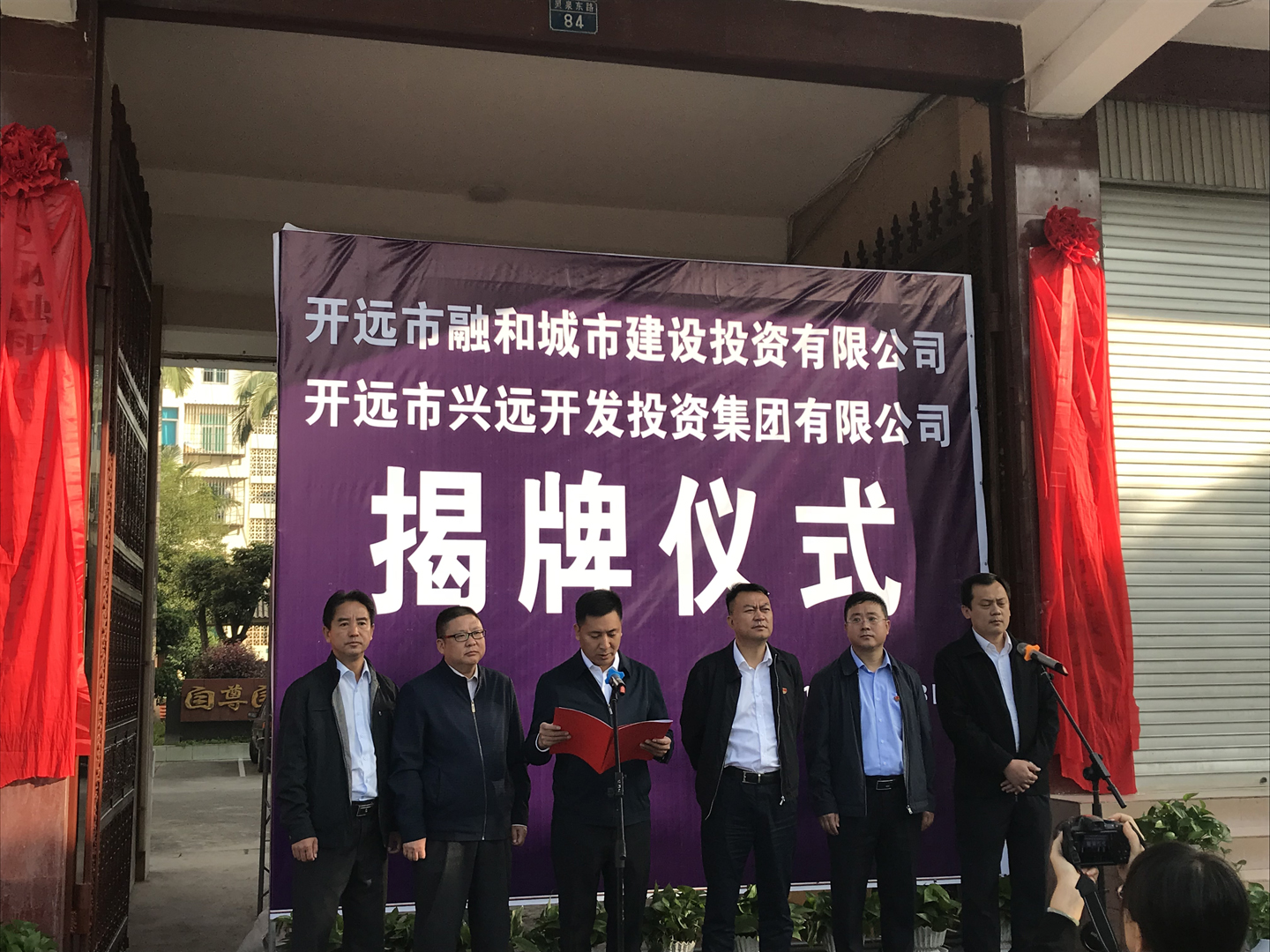 为加快政府职能转变,推动市属国有企业市场化运营转型,支持政府实体公司做大做强,经过对全市12家政府平台公司进行重组整合后,11月13日,开远市融和城市建设投资有限公司、开远市兴远开发投资集团有限公司共同举行揭牌仪式。