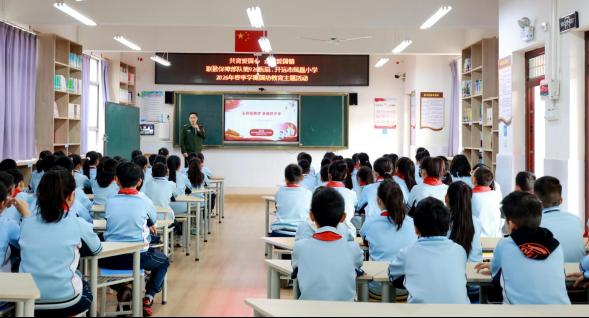 在国防教育课堂上,官兵们结合精心制作的课件,用通俗易懂的语言,向同学们系统讲解国防安全、国家安全形势、英雄模范事迹等内容,以鲜活案例、感人故事,引导同学们铭记历史、崇尚英雄、热爱国防。
