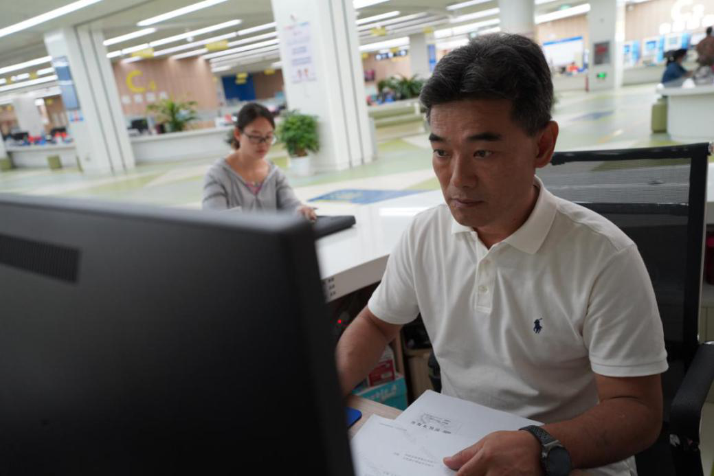 图为张世雄局长亲自操作办理业务