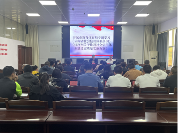 为贯彻落实省州市关于社会信用体系建设工作部署要求,有效加快推进我局社会信用体系建设工作。10月27日,开远市教育体育局召开2023年社会信用体系建设工作推进会。