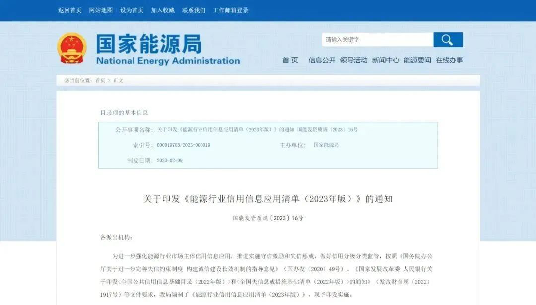 国家能源局发布《电力行业公共信用综合评价标准(试行》