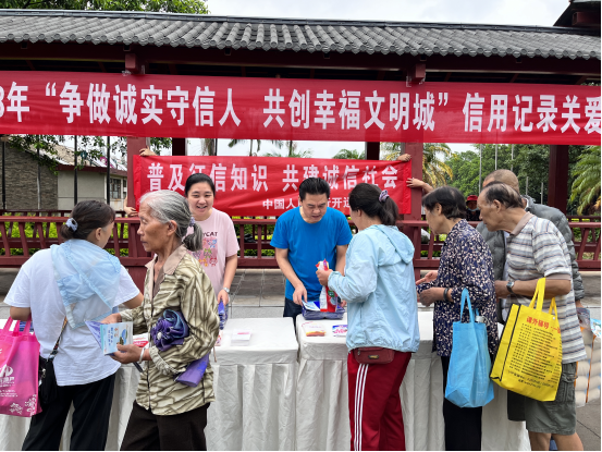 以“金融服务”为核心,积极履行金融知识普及和金融消费者教育的社会责任,联合多方整合宣传资源,弘扬金融正能量。2023年6月15日,开远市人行、开远市联社、开远市金融办、开远市公安局、开远市检察院、开远市市场监管局等6家单位实现跨单位联动,到临江北路与东新路交叉路口开展针对老年人群体的征信宣传活动,通过发放宣传折页、现场讲解、邀请参与网上答题等形式对过往老年人进行金融知识宣教,内容涵盖征信、防范电信诈骗、非法集资、存款保险、支付结算等多个方面。市人行、市金融办、市公安局的宣传人员还结合金融诈骗多起涉及征信的案例、相关法律知识,绘声绘色的讲解防范征信金融诈骗、保护自身经济安全的重要性,引导老年消费者自觉抵制网络诈骗。