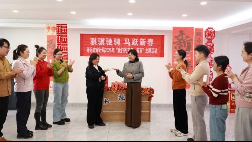 在“马年盲盒”惊喜大挑战环节,大家依次抽取马年主题盲盒,分享与“诚信”有关的成语祝福,将“龙马精神”的昂扬斗志与“诚实守信”的优良品质相结合,在轻松愉快的氛围中,进一步筑牢干部职工“诚信立身、诚信履职”的职业操守。