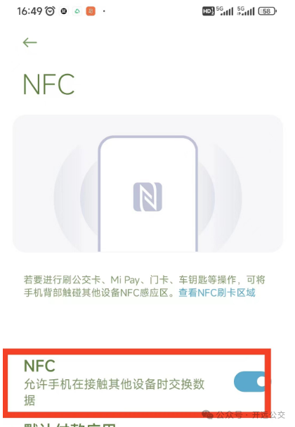 3、在手机设置内找到“NFC",打开