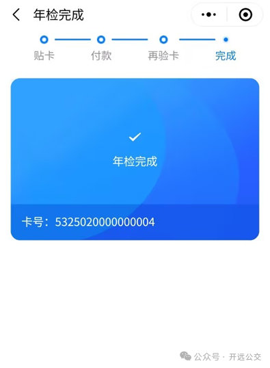 3、将卡片移开,然后再次贴卡,卡片信息更新成功,年检成功。
